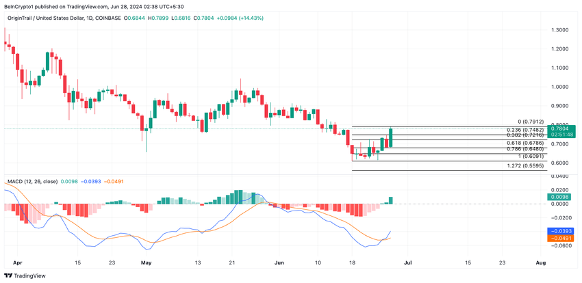 OriginTrail är ett projekt med öppen källkod som bygger en kunskapsinfrastruktur för artificiell intelligens (AI). Dess inhemska token, TRAC, har sett en prishöjning på 17% under den senaste veckan. Den handlas för närvarande på sin högsta prisnivå på sju dagar.