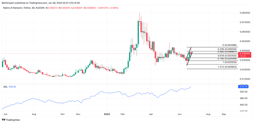 Vid presstillfället är tokens pris $0,036. Sedan den uppåtgående trenden började den 14 juni har dess Advance/Decline-linje också stigit. Vid presstillfället är indikatorns värde 515,70. Den har sedan dess stigit med 1,4%.