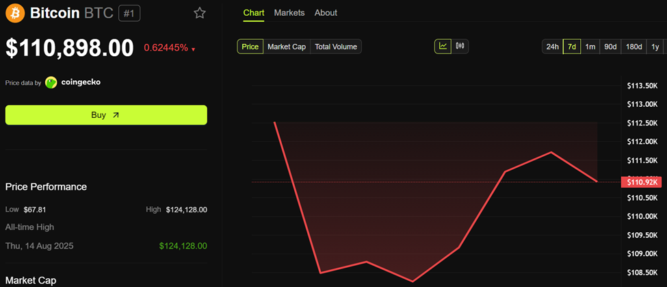 BTC ligger nära 111 000 USD vid pressens tidpunkt, fångad mellan dessa nyckelnivåer.