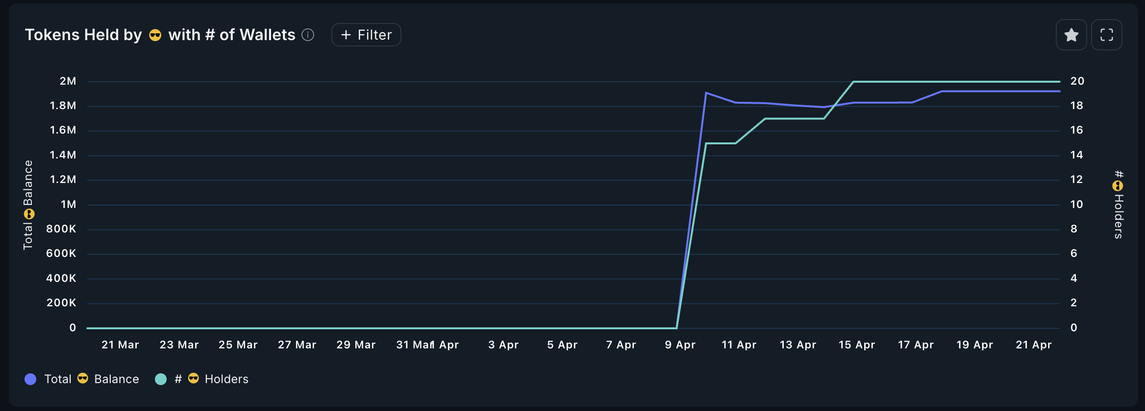 Mellan 9 april och 14 april ökade Smart Money-plånböcker som håller PROMPT från noll till 20. Det antalet har förblivit detsamma de senaste åtta dagarna.