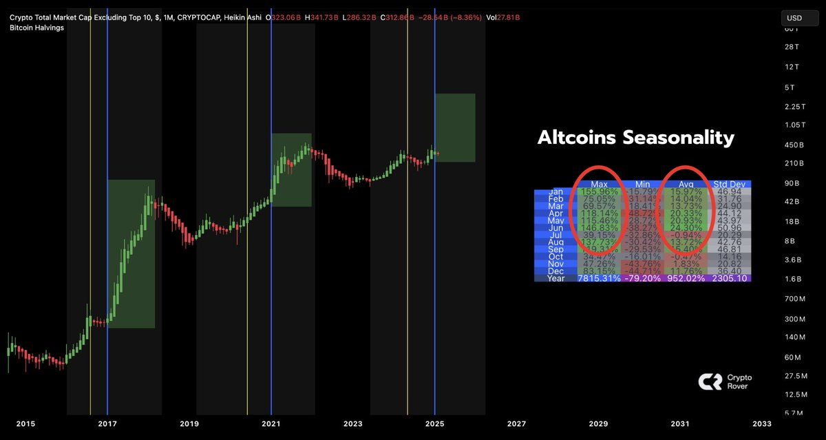 “Q1 är alltid positivt för altcoins. Denna gång blir inget undantag. Jag litar på historien,” kommenterade Rover här.