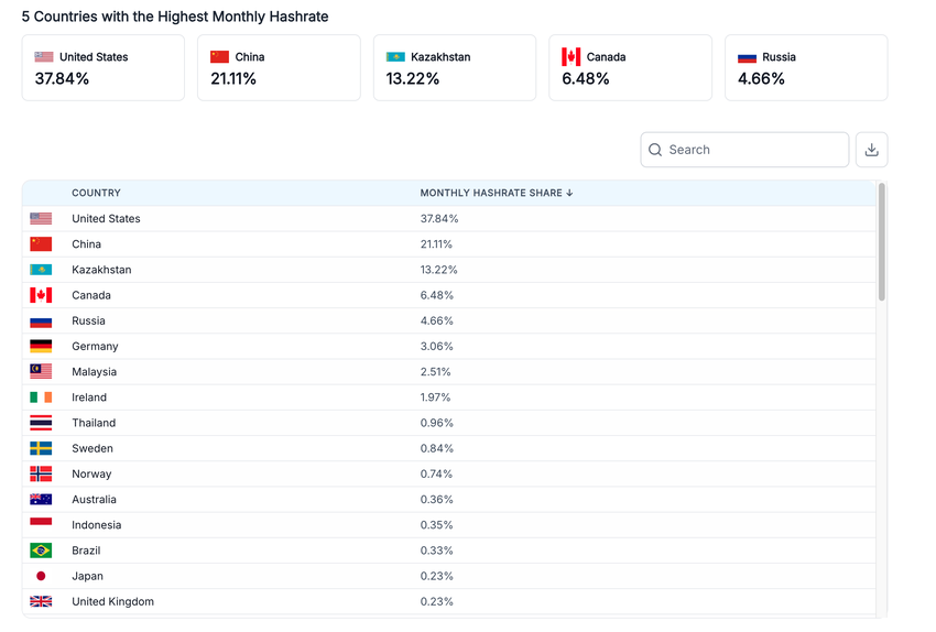 Trots förbudet mot kryptogruvdrift 2021 står landet fortfarande för mer än 21 % av den globala hashkraften. Denna uthållighet drivs av underjordiska vattenkraftsoperationer i regioner som Sichuan, spridda småskaliga gårdar som undviker upptäckt och lokala elbolag som tyst säljer överskottsel. Medan Peking upprätthåller ett förbud på papper, verkar det i praktiken tolerera en skuggig bitcoin-gruvindustri, vilket tillför betydande opacitet och transparensrisker till globala bedömningar.