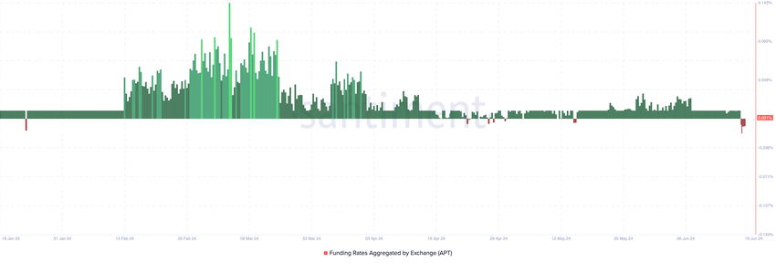 Efter nedgången i transaktioner förändrades också handlarnas sentiment kring APT. BeInCrypto fick nys om denna uppfattning efter att ha kontrollerat finansieringsräntan.