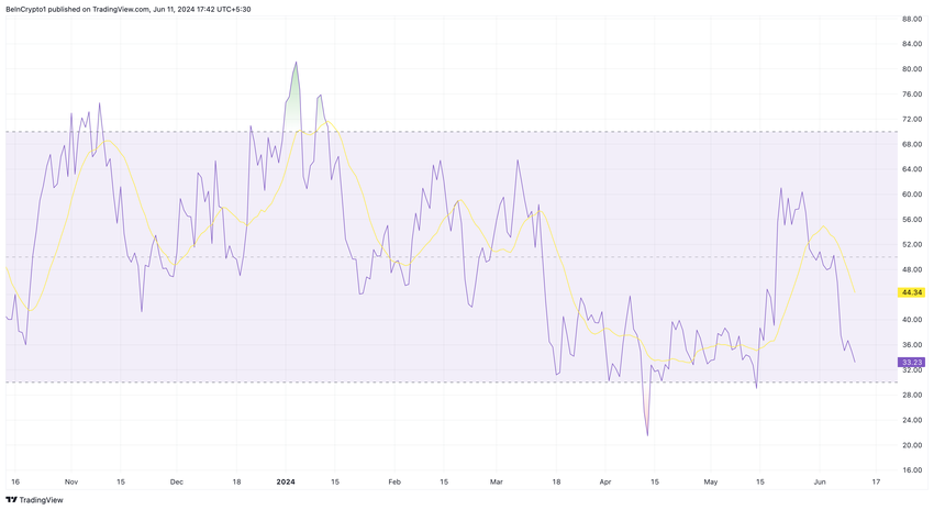 Det visar också om en kryptovaluta är översåld eller överköpt. När avläsningen är under 30 betyder det att en token är översåld. En avläsning över 70 indikerar dock ett överköpt tillstånd.