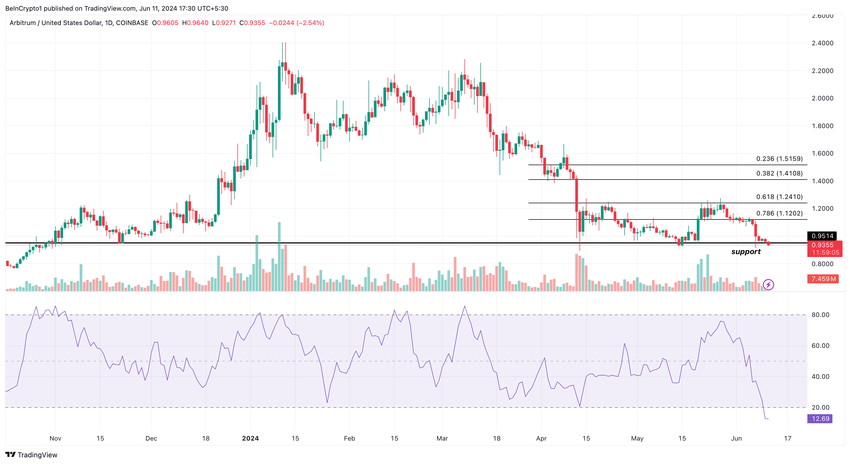 Arbitrums (ARB) prisfall under $ 1 kan ha gett en möjlighet som inte har dykt upp på länge. I skrivande stund var tokenpriset 0,94 dollar, en minskning med 56,90% på 90 dagar.