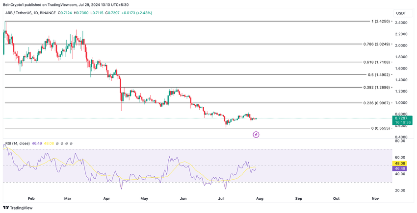 Detta har skett trots den stadiga nedgången i altcoins värde. ARB:s pris handlas för $0,73 vid presstillfället och har sjunkit med nästan 10% under de senaste 30 dagarna.