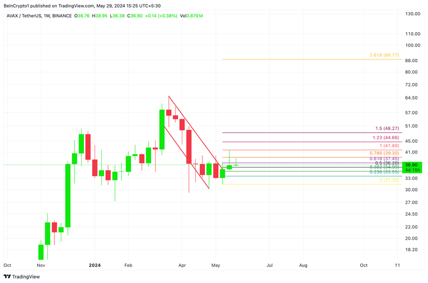 Om tjurarna misslyckas med att upprätthålla AVAX nuvarande rally och björnarna återfår full marknadskontroll, kan tokenpriset sjunka till $ 34.99.