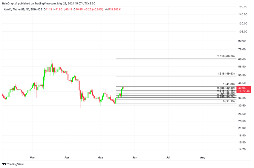 Om efterfrågan fortsätter att öka och tjurarna håller fast vid marknadskontroll, AVAX’s pris kan rally förbi $ 41 för att byta händer till $ 49.93.