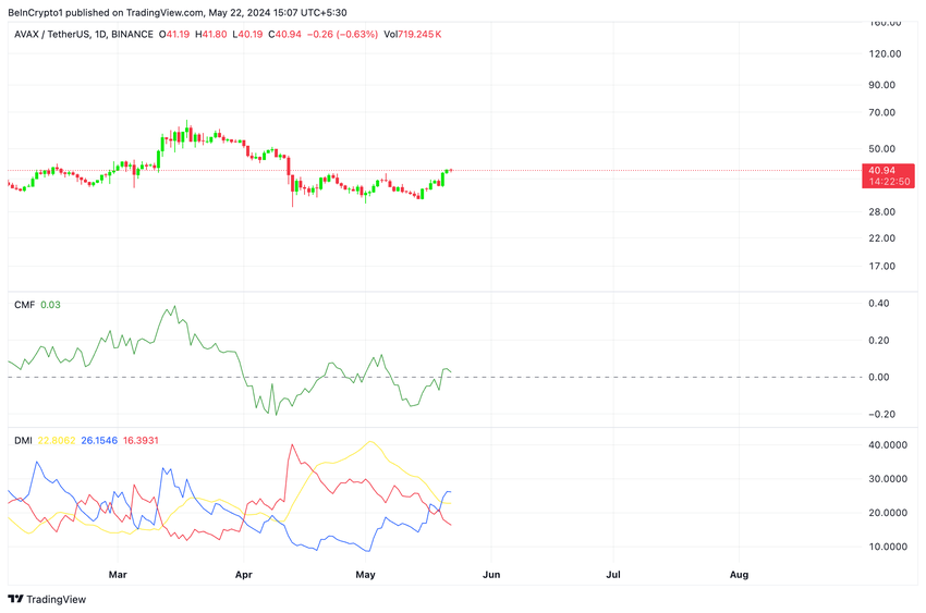 AVAXs CMF spårar penningflödet in och ut ur sin marknad. När det ger en avläsning över noll tyder det på att tokenens stängningskurs är högre än dess genomsnittliga pris för perioden, och handelsvolymen är också över genomsnittet. Detta signalerar att köpare är mer aktiva på marknaden.