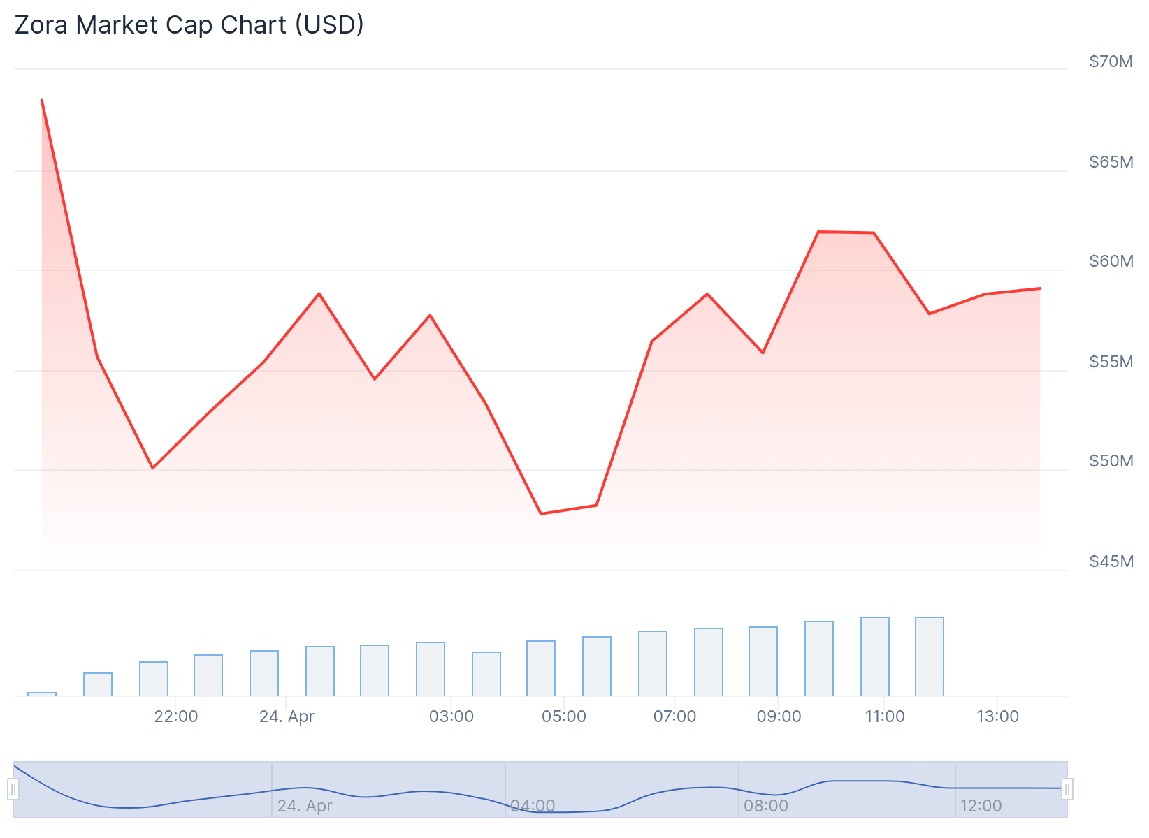 ZORAs marknadsvärde har minskat med 14 %, från 68 miljoner USD till 58 miljoner USD på kort tid. Denna minskning stämmer överens med de observerade utflödena, vilket stödjer argumentet att investerare drar tillbaka medel från tokenen.