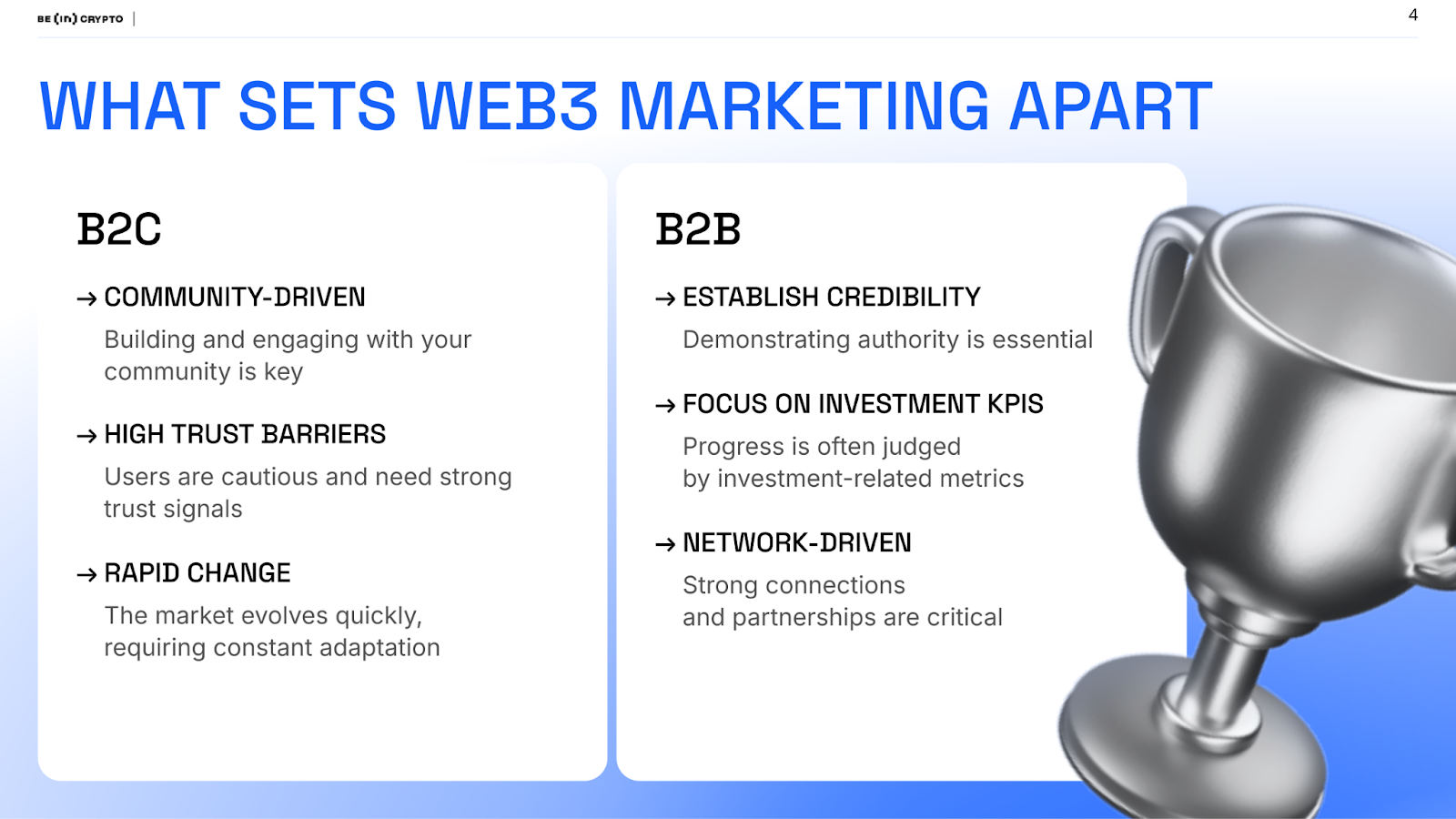 Detta, hävdade hon, är en av de största dolda förlusterna inom kryptomarknadsföring. Teamen mäter ofta annonsens prestation men inte förtroendegapet som existerar när användare söker validering och inget hittar.