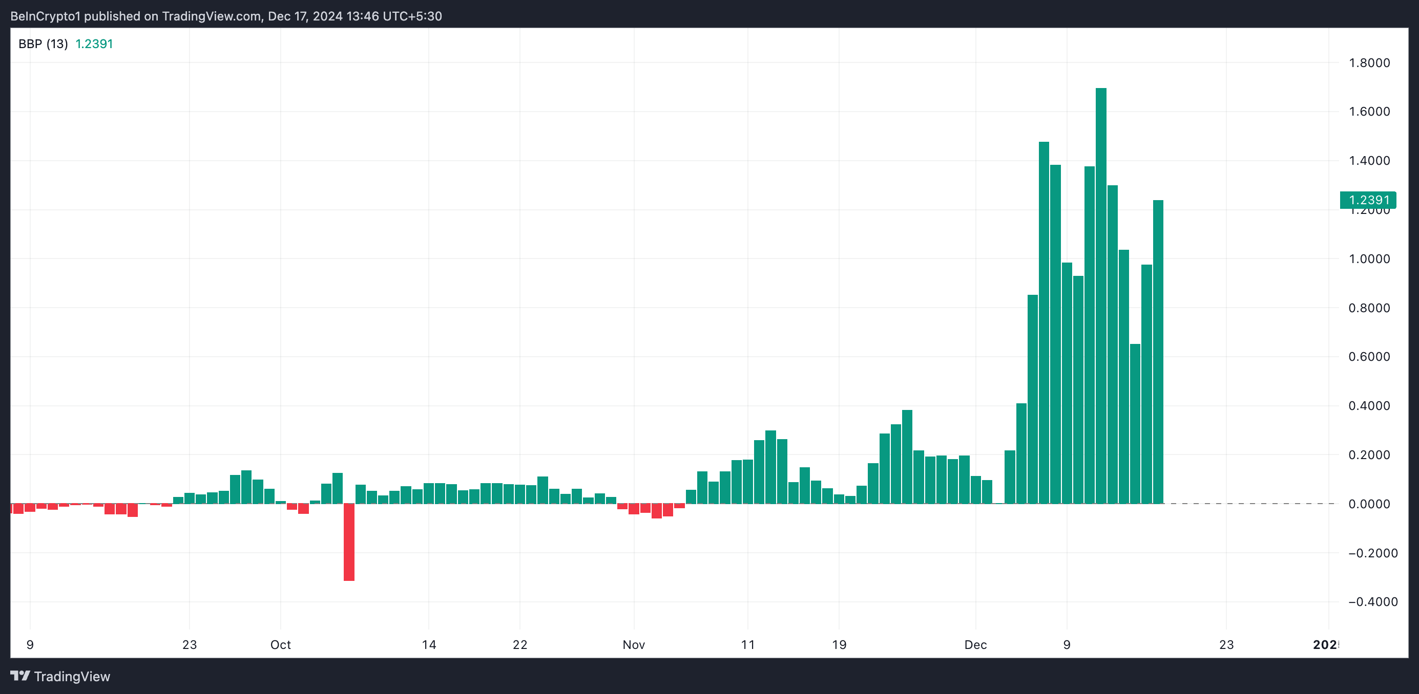Vidare bekräftar avläsningar från BGB:s Elder-Ray Index denna positiva trend. Vid skrivande stund är indikatorns värde 1,23, över nollstrecket.