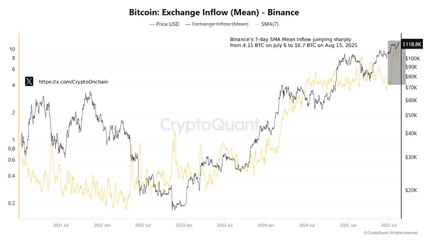 CryptoOnchain betonade det historiska mönstret för sådana rörelser. “Historiskt sett har betydande inflödesökningar — när de inte matchas av stark köpefterfrågan — ofta föregått perioder av kortsiktigt säljtryck,” skrev analytikern.