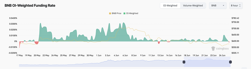 Trots BNB:s prisnedgång sedan början av månaden har dess terminsmarknadshandlare förblivit motståndskraftiga. Myntets aggregerade finansieringsränta på kryptovalutabörser visar att marknadsaktörer fortsätter att kräva fler långa positioner än korta.