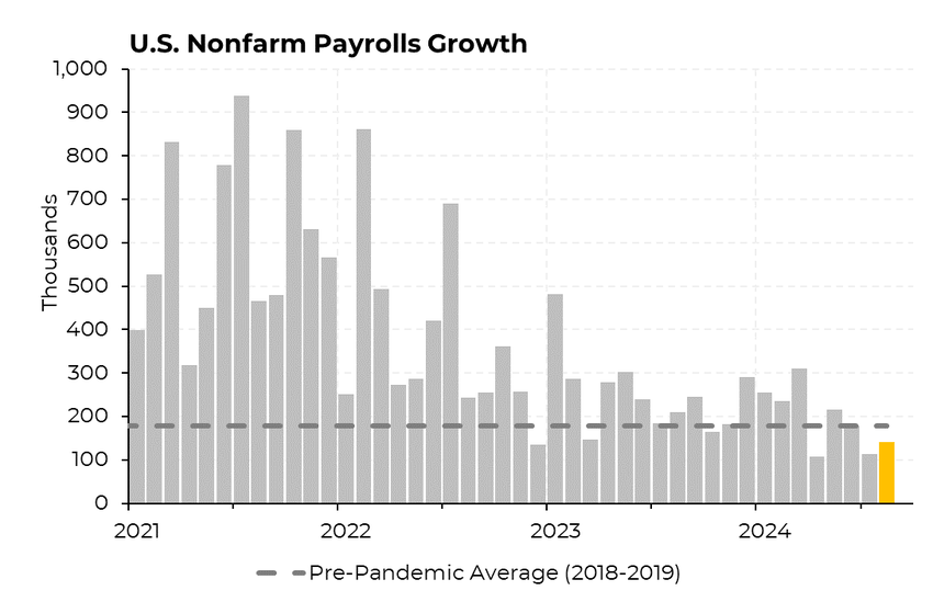 Marknaderna förväntar sig en räntesänkning på 50 bp i september på grund av försämrad arbetsmarknadsdata i USA. Enligt den amerikanska rapporten om icke-jordbruksanställningar (NFP) som släpptes på fredagen, lade USA till 142 000 jobb i augusti, vilket är under de förväntade 164 000.
