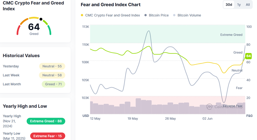 - Bitcoin närmar sig 110 000 USD motstånd, men stigande KPI och marknadssentiment i “Greed”-zonen kan utlösa en prisjustering.