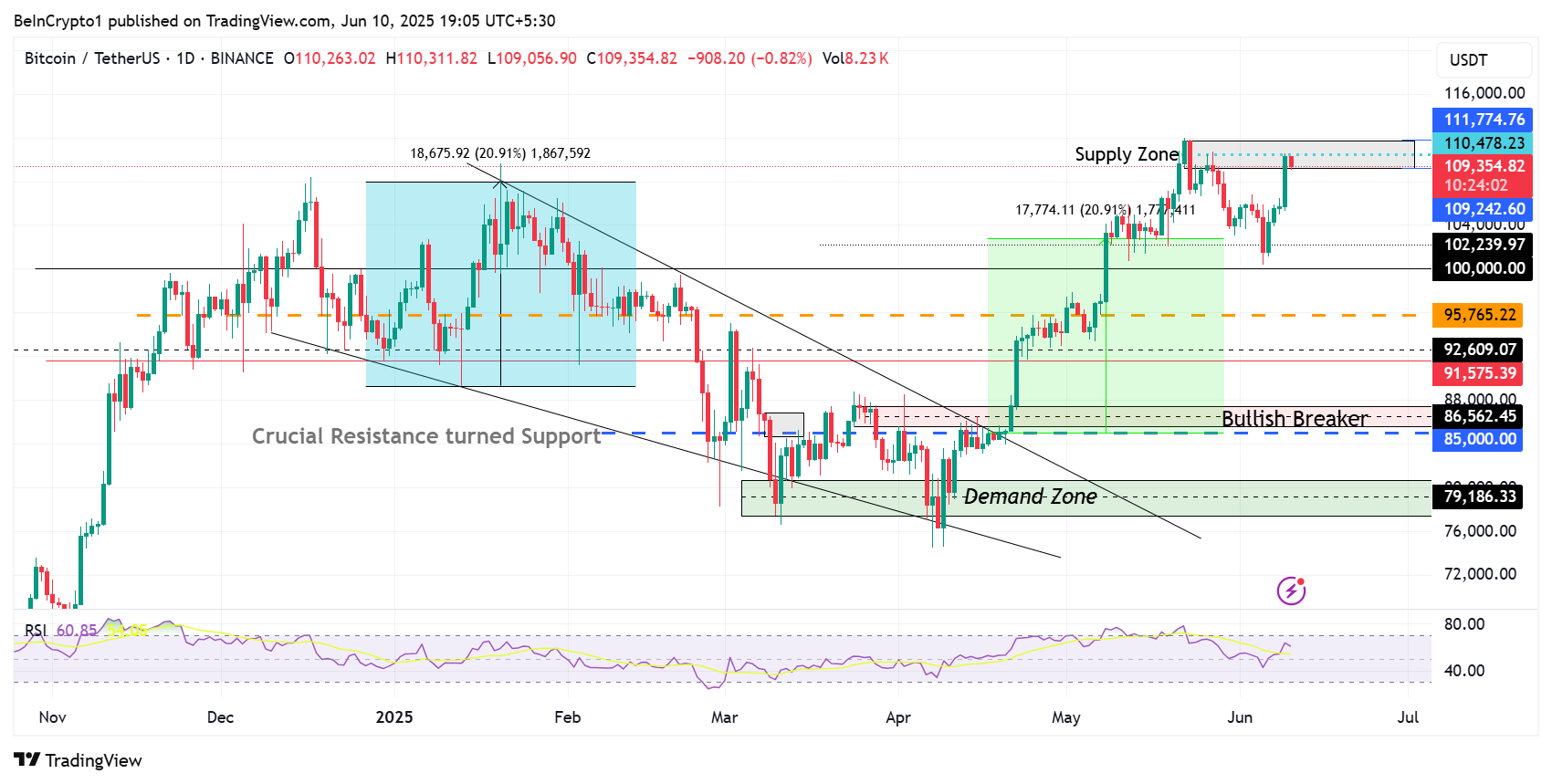 Men som BeInCrypto förklarade, är uppsidan beroende av att BTC övervinner utbudszonen mellan 109 242 USD och 111 774 USD.