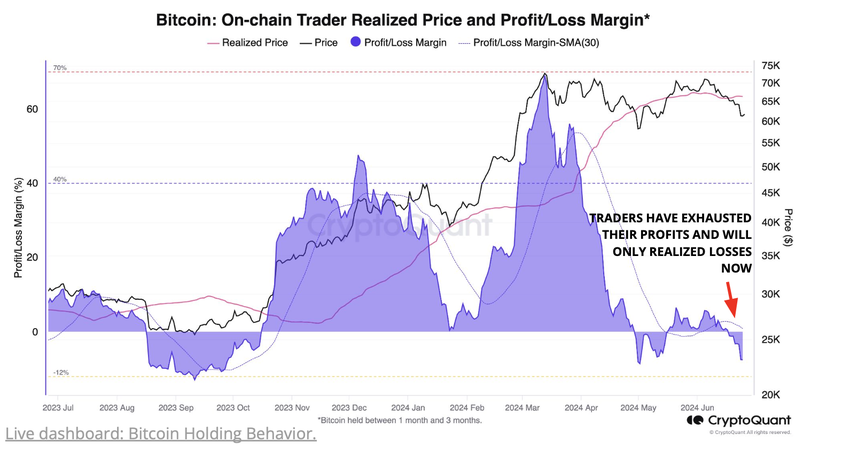 “Sedan mitten av juni har spotpriset sjunkit under kostnadsbasen för både 1 vecka till 1 månad gamla innehavare (68 500 dollar) och 1 månad till 3 månader gamla innehavare (66 400 dollar). Om denna struktur kvarstår har det historiskt sett resulterat i en försämring av investerarnas förtroende och riskerar att denna korrigering blir djupare och tar längre tid att återhämta sig från,” sa Glassnode.