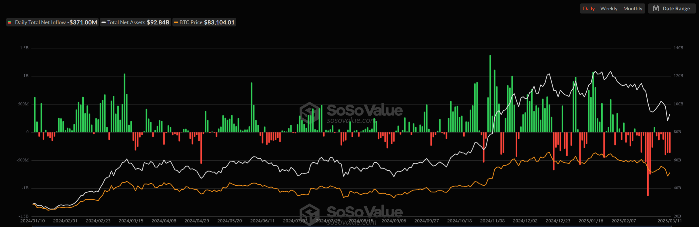 Trots denna ETF-pessimism, kunde Bitcoins faktiska pris ha varit mycket sämre. Hela kryptomarknaden har drabbats av massiva utflöden, och BTC föll därefter.