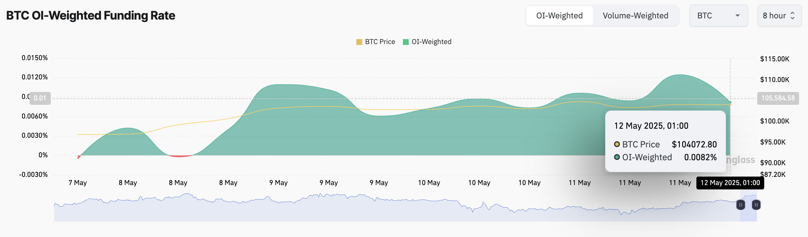 En ökning i BTC:s pris och öppet intresse signalerar förtroende, eftersom fler handlare tar positioner. Denna kombination tyder på en stark trend, där handlare förväntar sig att prisrörelsen fortsätter i samma riktning.