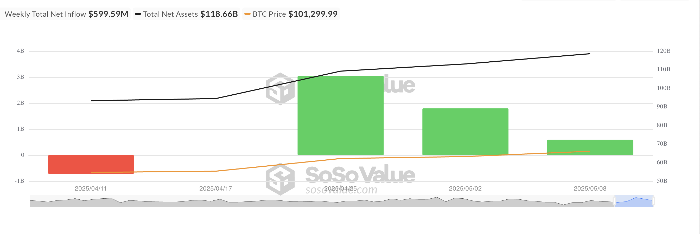 Förra veckans minskning i inflöden tyder på att även om det institutionella intresset för BTC-exponering kvarstår, saktar takten ner, möjligen på grund av försiktighet eller rädsla. Det speglar en avvaktande inställning från investerare som hade väntat tre månader på att valutan skulle bryta över 100 000 USD och nu ser om den kan hålla och stabilisera sig över den viktiga nivån.