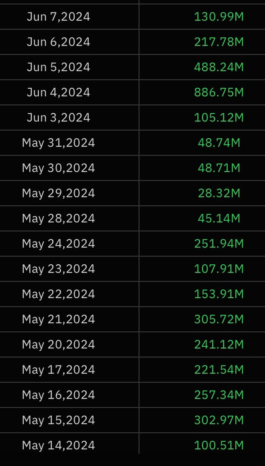 Intressant nog sammanfaller dessa rekordkorta positioner med en 19-dagars rad av inflöden till Bitcoin ETF: er. Under de senaste tre veckorna såg ETF: erna över 2 miljarder dollar i inflöden. Trots detta betydande inflöde lyckades Bitcoins pris dock inte nå sin högsta nivå i mars på 73,835 XNUMX dollar. Istället registrerade den en blygsam vinst på 2% under de senaste sju dagarna.