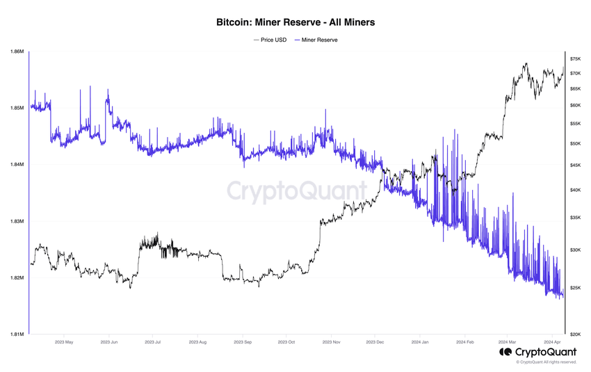 Som svar på dessa utmaningar har vissa miners eskalerat sina Bitcoin -försäljningsaktiviteter. Till exempel nådde den dagliga försäljningen till OTC-byråer 1 600 Bitcoin i slutet av mars, den högsta nivån sedan augusti 2023. Samtidigt har Bitcoin-reserverna som innehas av miners varit på en konsekvent nedåtgående bana under det senaste året.