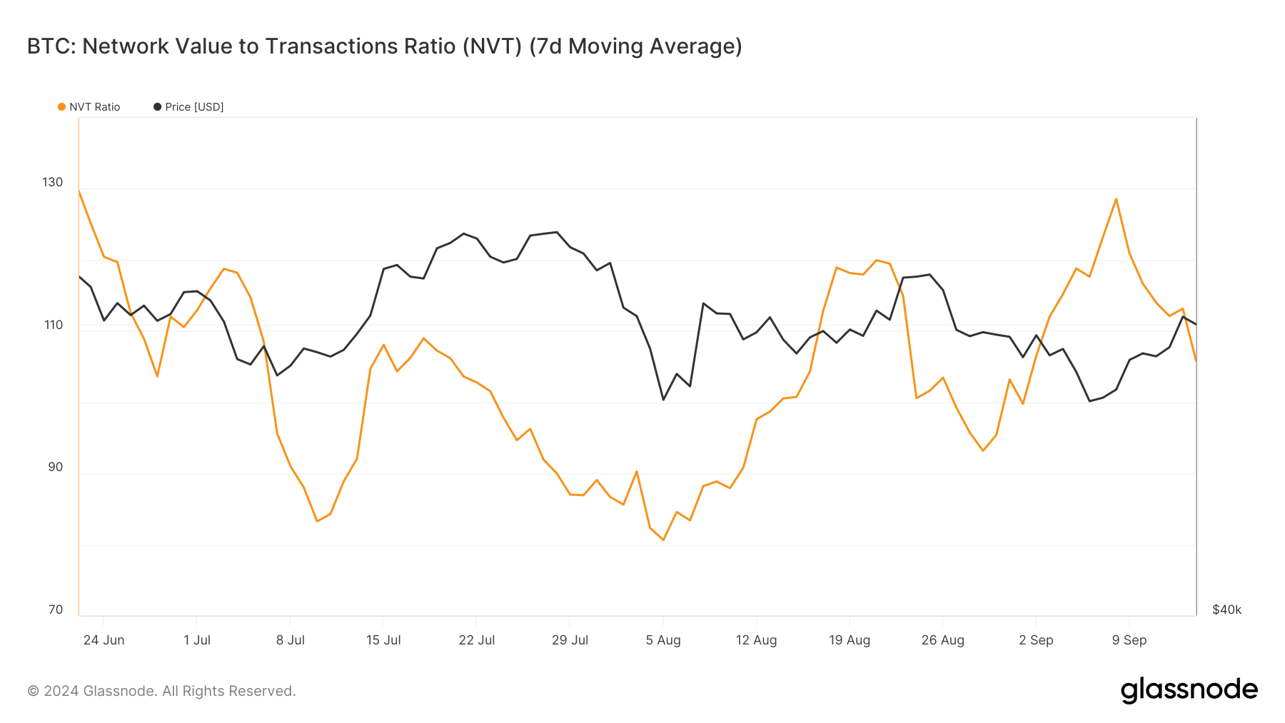Bitcoins nätverksvärde till transaktioner (NVT) förhållande, en nyckelindikator för att bedöma om tillgången är övervärderad eller undervärderad, har visat en kortsiktig nedgång. Även om det makroekonomiska NVT fortsätter att stiga, vilket indikerar en potentiell övervärdering på bredare marknad, antyder den senaste nedgången att Bitcoin har en möjlighet att bryta igenom motståndet vid 61 725 USD. Om BTC kan vända denna nivå till stöd, kan det leda till ytterligare prisökningar och stärka det optimistiska sentimentet bland investerare.