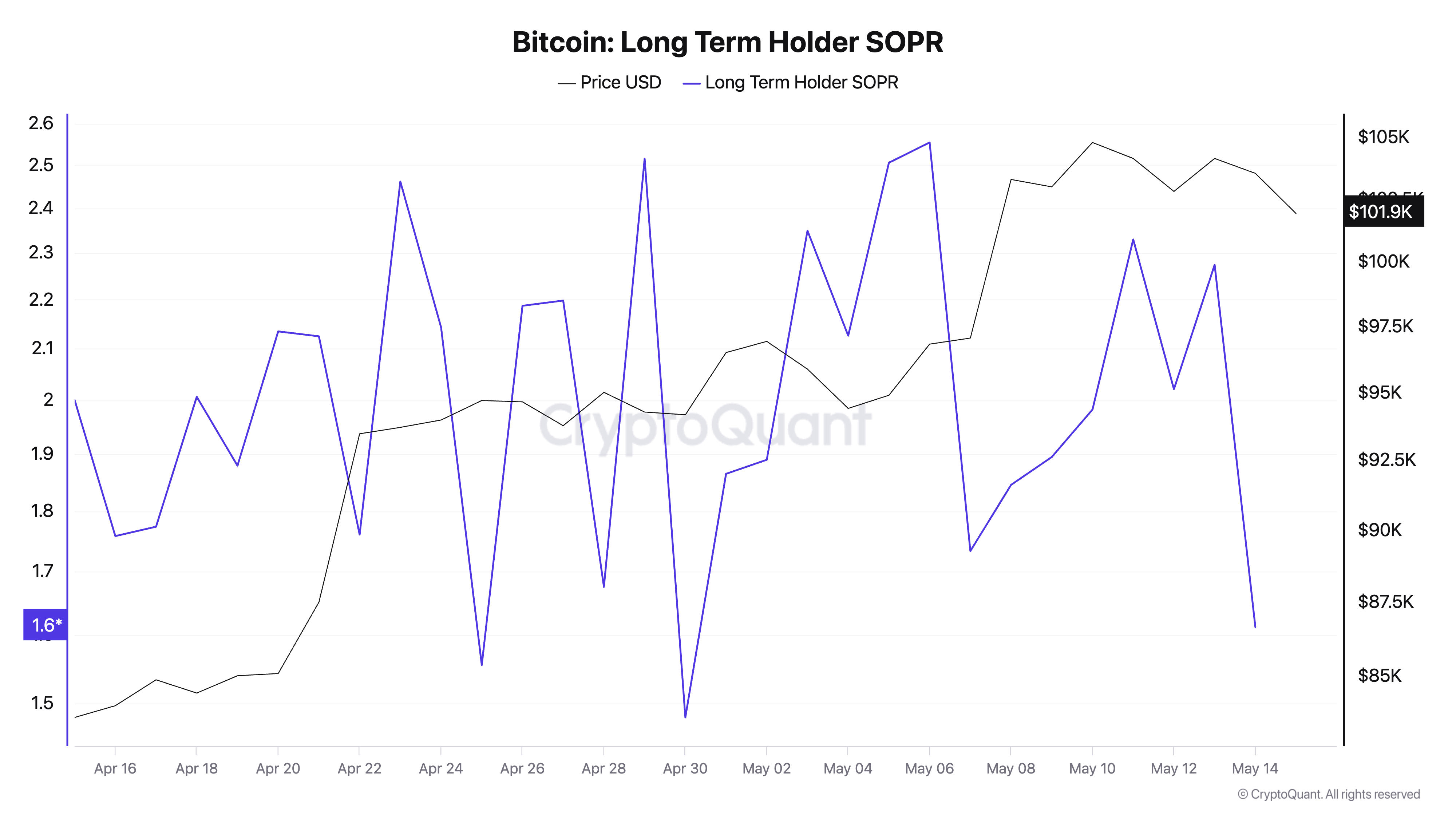 Bitcoins korta uppgång över det psykologiska priset på 105 000 USD har ökat aktiviteten bland dess långsiktiga innehavare (LTHs).