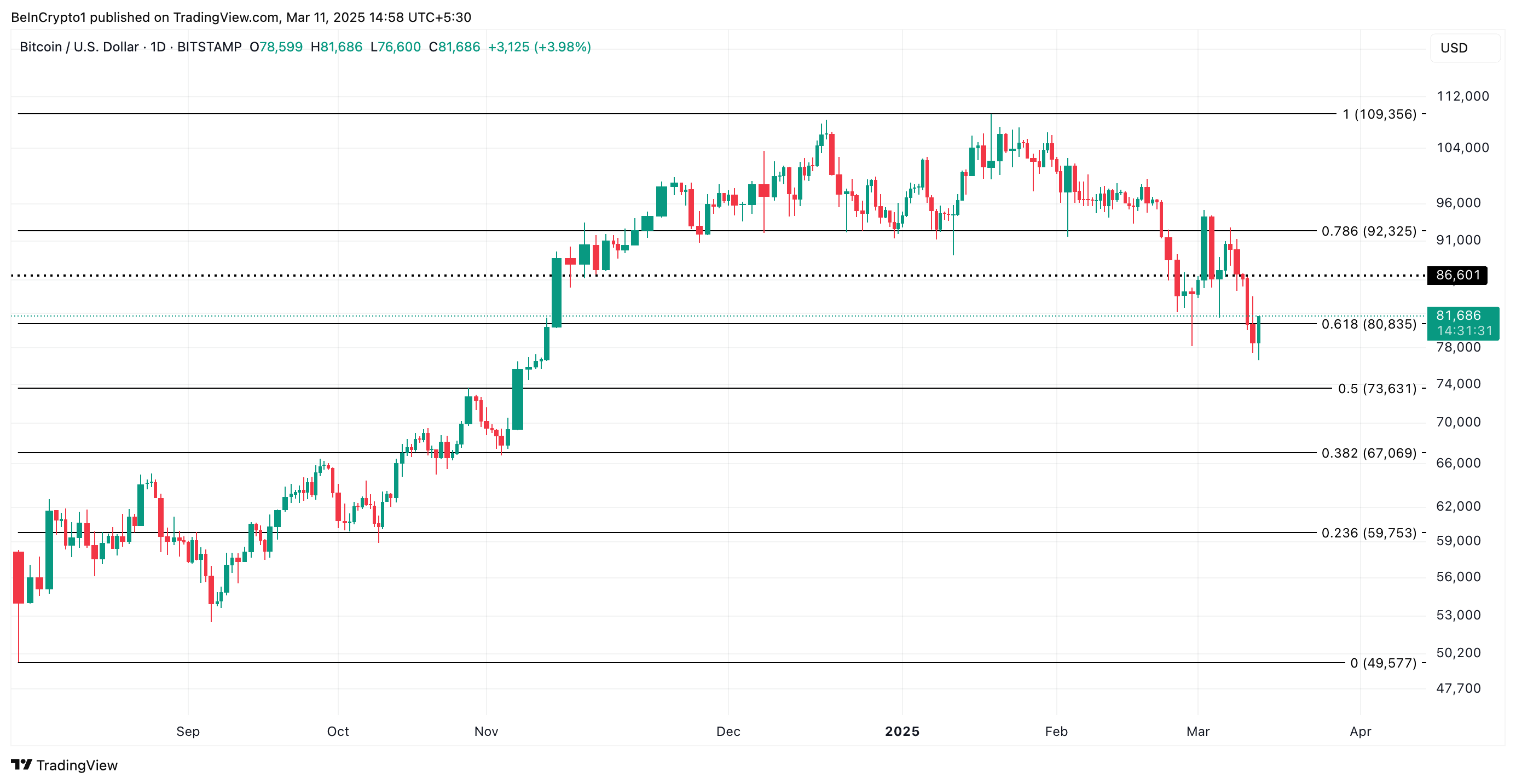 Men om stark efterfrågan kliver in för att absorbera det extra utbudet, kan det driva upp BTC:s värde till 86 601 USD.