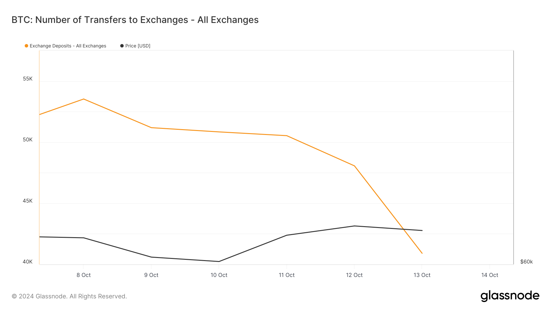 En minskning av insättningar tyder på att färre investerare skickar sina tillgångar till börser för att sälja. Detta återspeglar förtroende för BTC:s långsiktiga värde, vilket antyder att innehavare förväntar sig att priset kommer att fortsätta stiga.