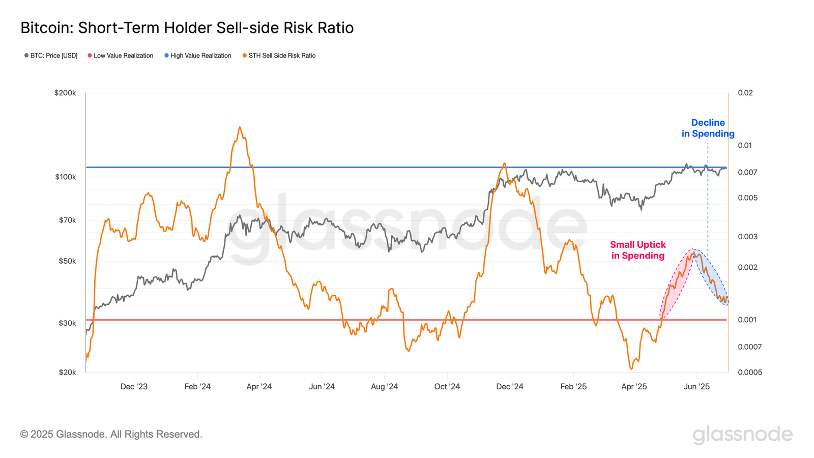 Bitcoin Short-Term Holder Sell-Side Risk Ratio. Källa: Glassnode