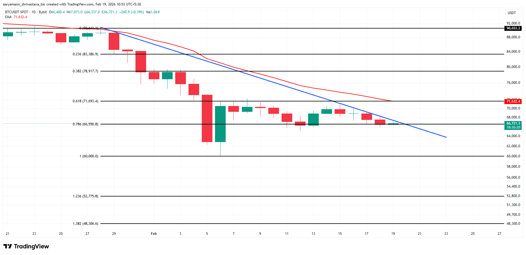 För att motbevisa den negativa analysen måste Bitcoin återhämta sig tydligt från 66 550 USD. Ett genombrott ovanför 71 693 USD skulle visa på starkare momentum. Ett återtagande av det kortsiktiga 20-dagars EMA stärker möjligheten till återhämtning. Om priset går över 80 000 USD, tyder det på ny långsiktig tilltro.