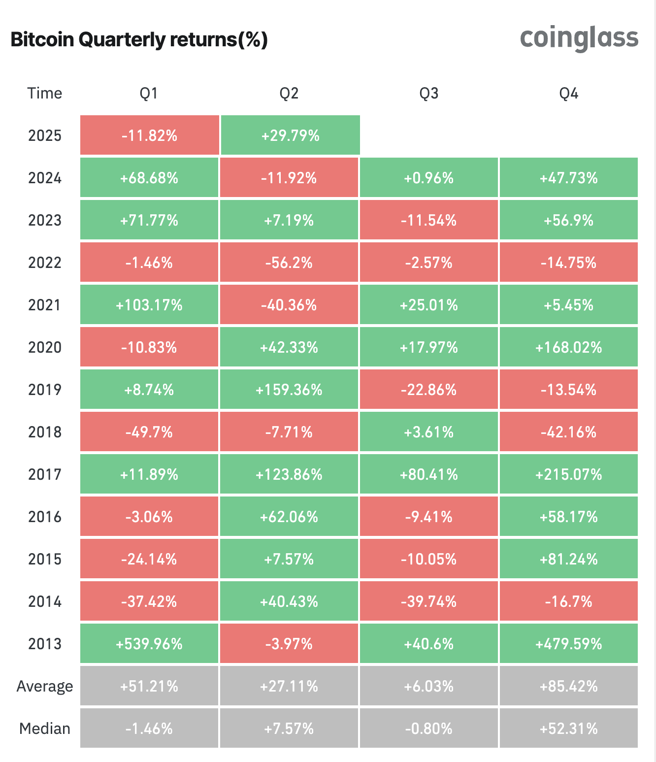 Coinglass data visade att medan Bitcoin sjönk i början av året, återhämtade det sig starkt i Q2. Under andra kvartalet hade BTC en avkastning på 29,79%.