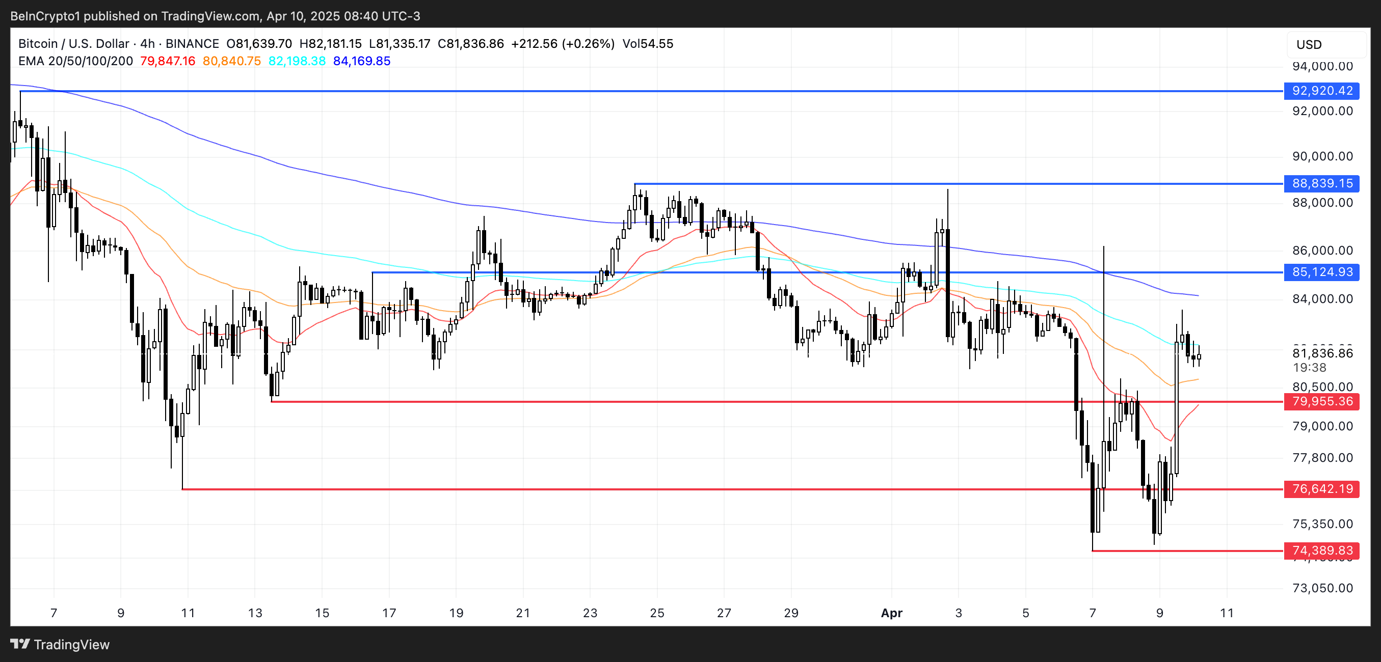 Ett sådant genombrott kan öppna vägen för att testa motståndsnivåer, med potentiella uppsidemål runt 85 124 USD. Om brutet, kan ytterligare uppgång vara till 88 839 USD och till och med 92 920 USD.