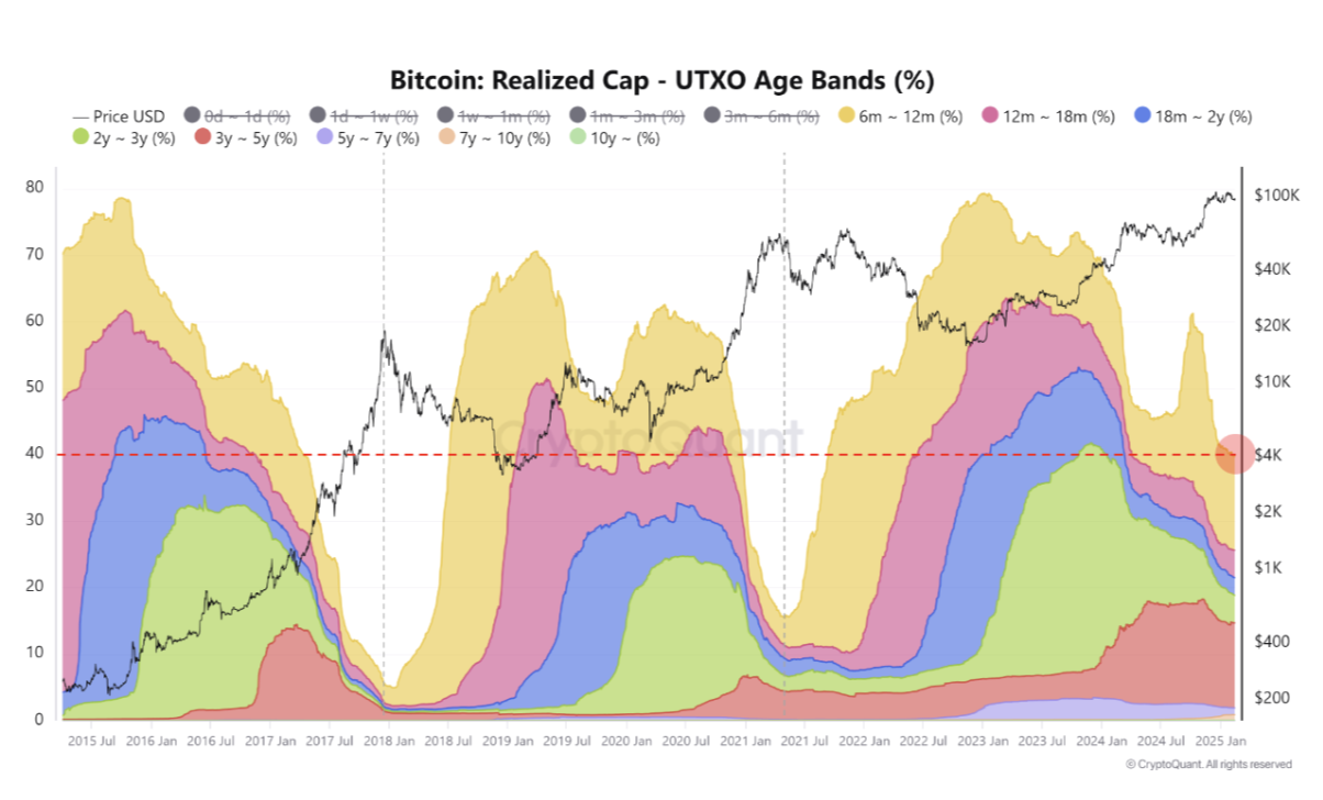 Bitcoin UTXO Age Bands. Källa: CryptoQuant