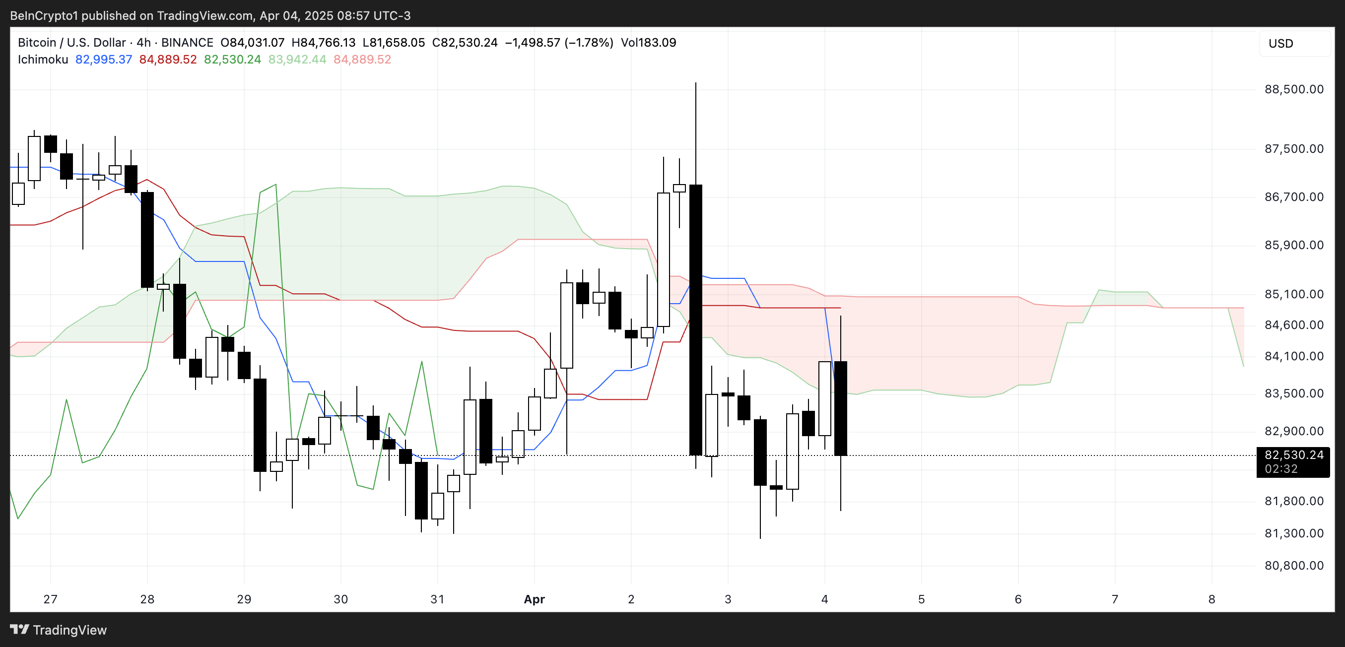 Den nuvarande Ichimoku Cloud-inställningen för Bitcoin visar en blandad men något försiktig känsla.