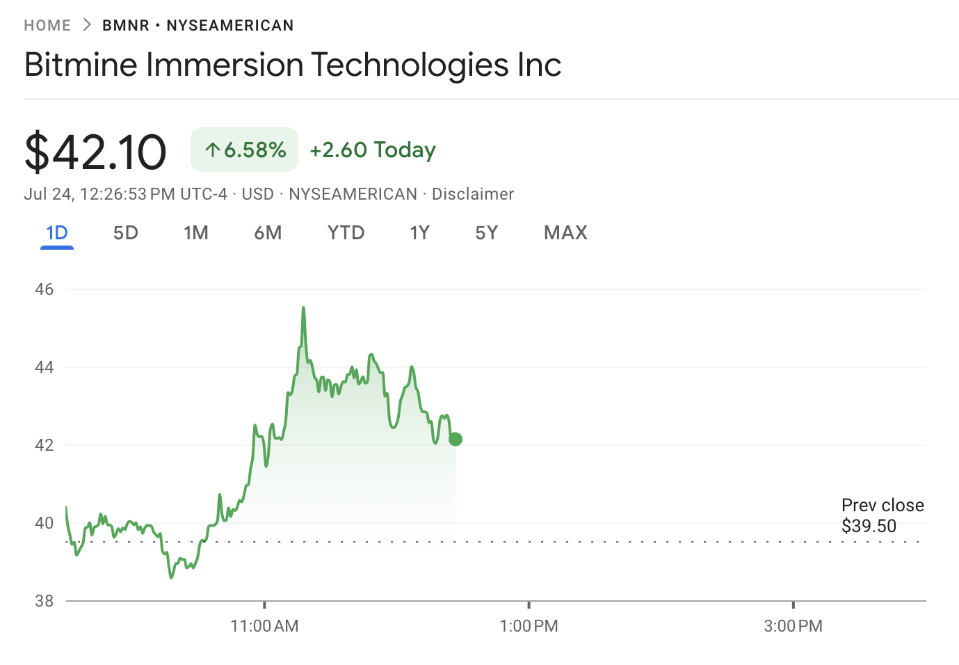 Bitmine Price Performance
