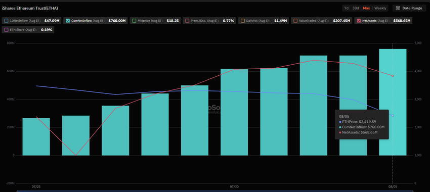 Uppgifterna visade också att BlackRocks iShares Ethereum Trust (ETHA) hade nettotillgångar på 568,65 miljoner dollar vid samma datum, vilket rankade den som den tredje största Ethereum ETF på den amerikanska marknaden efter Grayscales ETHE och Ethereum Trust.