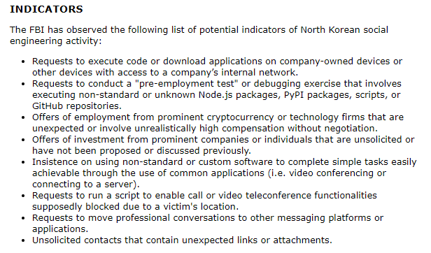 Enligt FBI använder nordkoreanska brottslingar avancerade tekniska taktiker för att rikta in sig på anställda inom kryptoindustrin, särskilt de på Bitcoin ETF-företag och DeFi-företag. Brottslingarna engagerar sig i “svåra att upptäcka sociala ingenjörskampanjer,” enligt myndighetens officiella meddelande.