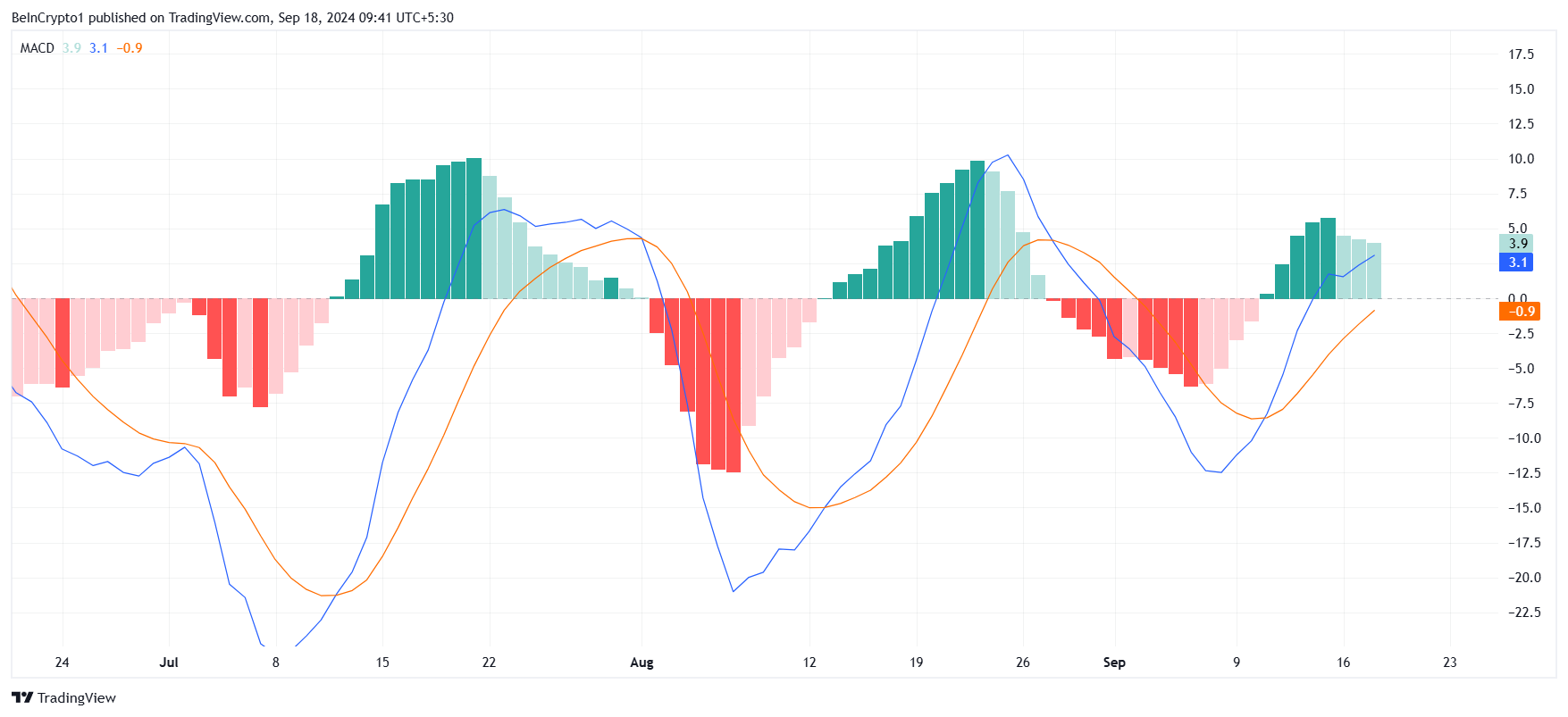 Den övergripande makromomentet för BNB visar blandade signaler. Tekniska indikatorer som Moving Average Convergence Divergence (MACD) tyder på att optimismen gradvis avtar. Även om BNB sannolikt kommer att bryta igenom motståndet på 550 USD, kommer det att möta utmaningar vid 580 USD-nivån.