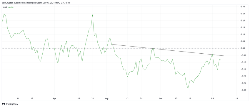 Detta tyder på att investerare drar ut sina investeringar ur myntet. CMF under den neutrala linjen indikerar att myntet upplever fler utflöden än inflöden. Trots den lilla uppgången fortsätter den nedåtgående trenden att dominera indikatorn, vilket kan signalera bristande förtroende bland investerare.