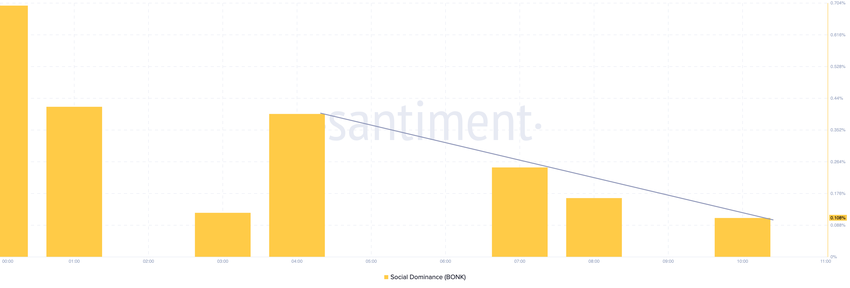Vid presstillfället har Bonks sociala dominans sjunkit från en topp på 0,396% i slutet av juni till 0,103%.