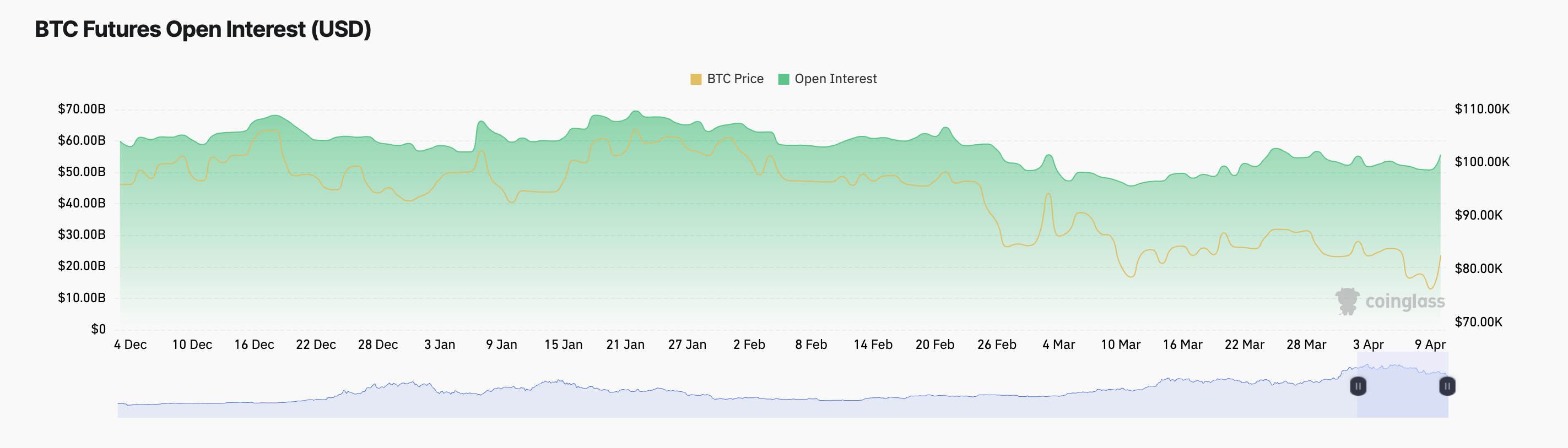Enligt Coinglass är BTC:s öppna intresse för terminer 55 miljarder USD, med en ökning på 10 % under det senaste dygnet. När ett tillgångs öppna intresse stiger på detta sätt öppnas fler nya positioner på derivatmarknaden, vilket indikerar ökad handelsaktivitet och investerarintresse.