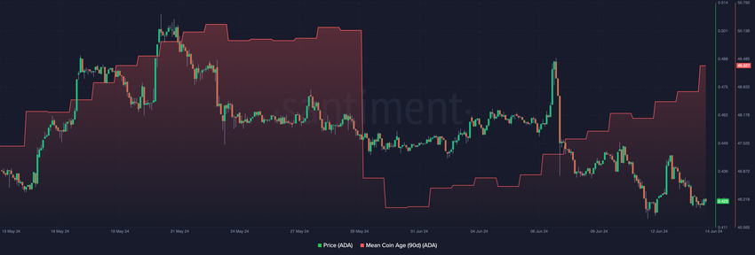 Å andra sidan tyder en låg myntålder på ackumulering av nya mynt. I Cardanos situation visar data från Santiment att 90-dagars MCA har ökat sedan den 1 juni.