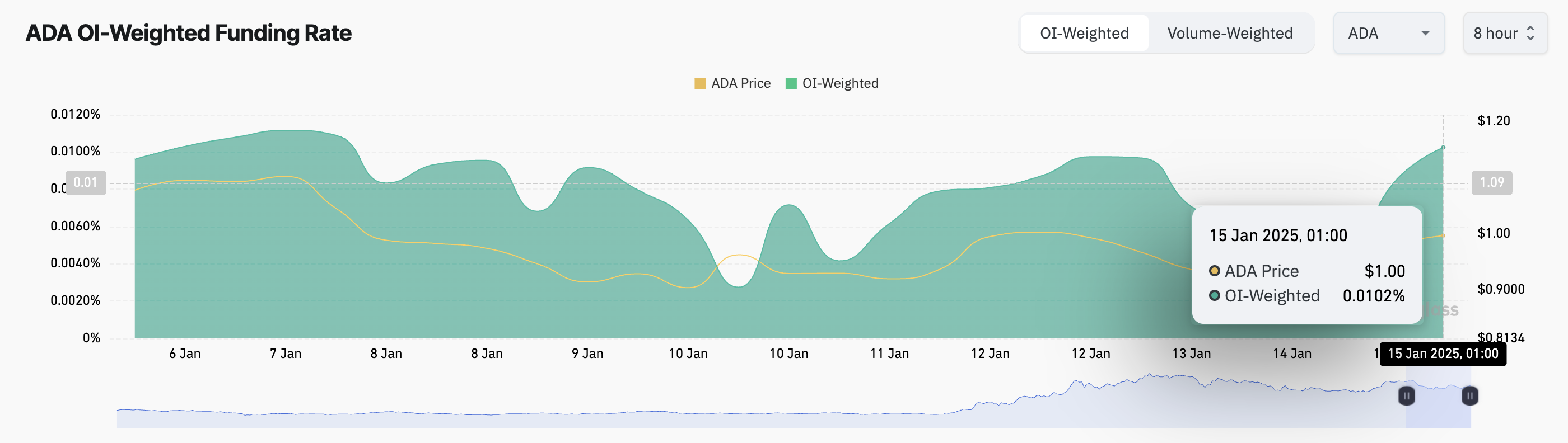 Vidare har Cardanos finansieringsränta, som speglar kostnaden för att låna ADA i eviga terminskontrakt, förblivit positiv. I skrivande stund ligger den på 0,01 %.