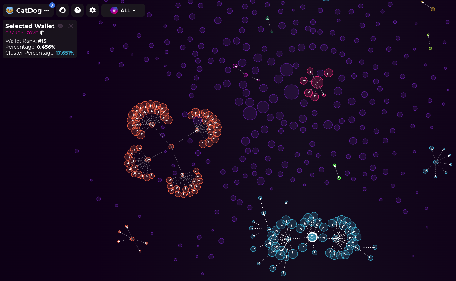 Blockchain-analysföretaget Bubblemaps har utfärdat varningar om CATDOG:s marknadsrörelser. Deras forskning visar att 140 anslutna plånböcker har 40 % av myntets utbud, en klassisk röd flagga inom kryptosektorn. Till exempel skar en plånbok, g3ZJo5, initialt sönder CATDOG:s utbud och distribuerade snabbt delar till 60 andra plånböcker samtidigt som 17,7 % bibehölls.