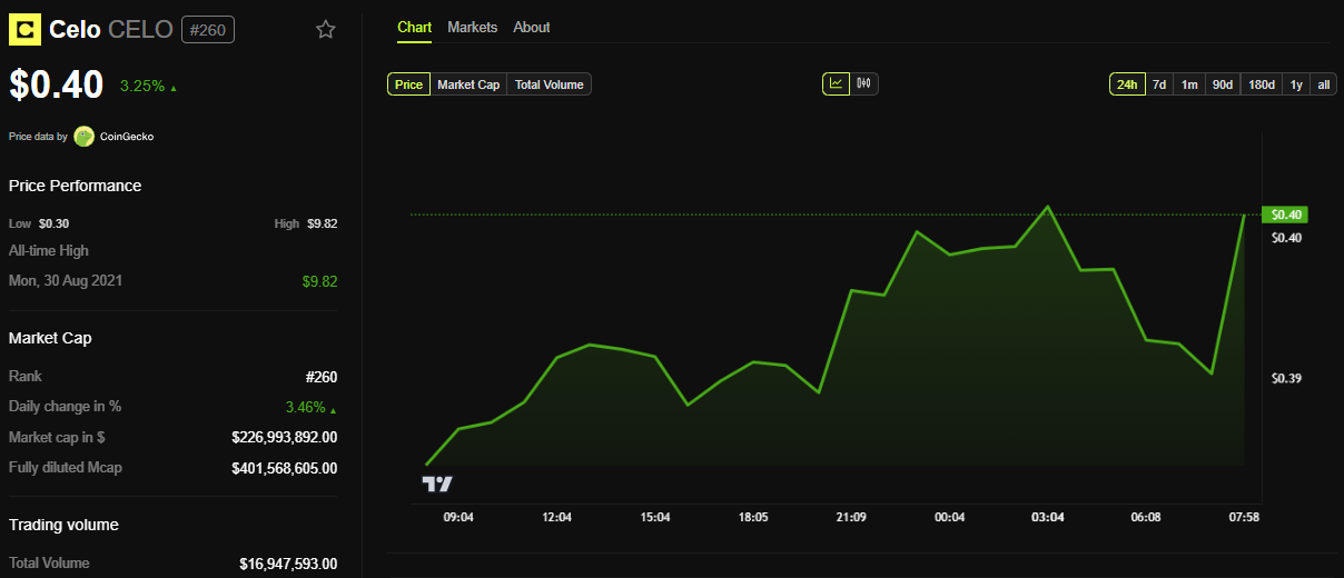 Efter tillkännagivandet steg CELO:s pris med nästan 4 %, vilket återspeglar marknadens optimism om flytten.