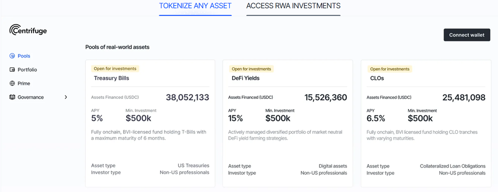 centrifuge erbjuder tokeniserade rwa-pooler för investerare. källa: centrifuge