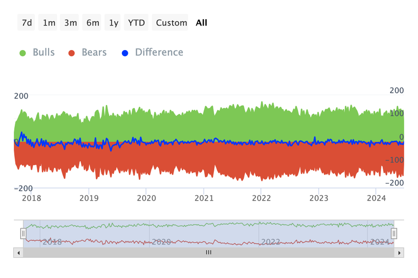 Däremot kommer positioner värderade till 10,99 miljoner dollar att likvideras om LINK sjunker till 12,18 dollar. Data från IntoTheBlock avslöjar dock att en nedgång till $12-regionen ser osannolik ut, vilket framgår av Bulls and Bears-indikatorn.